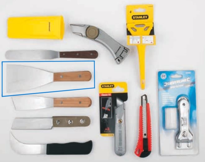 It features a 100mm wide blade, which allows for efficient scraping over larger areas. This type of scraper is particularly useful for preparing surfaces before repainting or refinishing, ensuring a smooth and clean base.