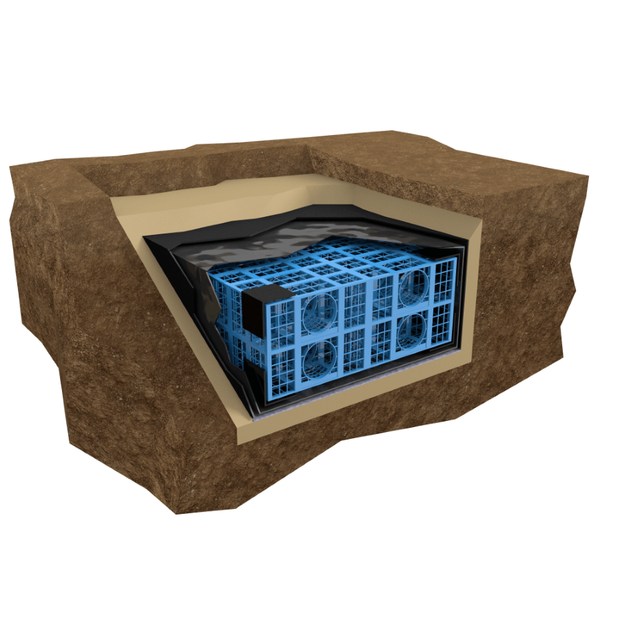 • Multi functional geomembrane for demanding situations – suitable for use in stormwater attenuation systems and as an impermeable membrane in permeable paving systems